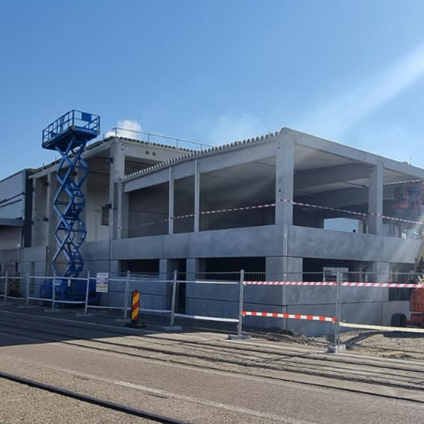 Clădirea se află în centrul fabricii Egger România, unii dintre cei mai mari colectori de deșeuri lemnoase și producători de: PAL, OSB, parchet etc. Pentru acest proiect SW Umwelttechnik România a produs, livrat și montat stâlpi prefabricați din beton, grinzi de acoperiș prefabricate și pretensionate din beton, grinzi de acoperiș din beton, nepretensioanate, grinzi de planșeu din beton, scări prefabricate și predale cu trigon. De asemenea fațada clădirii a fost acoperită cu panouri de soclu, montate pe trei rânduri suprapuse, isolate termic în interior, panouri care vor rămâne aparente.